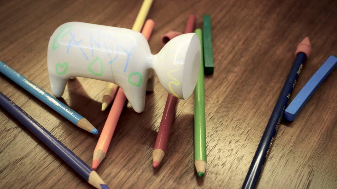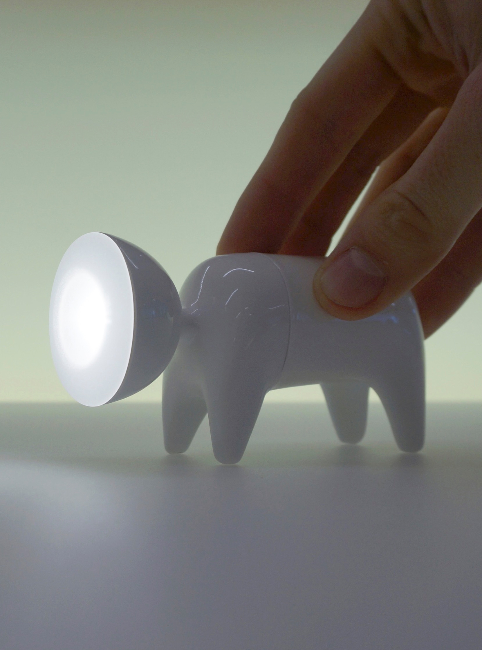 Conceived as a targeted, portable lighting solution and interactive design object in equal parts, Baby Spot is a spirited take on the traditional flashlight that can also function as a child’s toy. When on, its light weight, cordless compact form, and battery-powered LED bulb provide targeted illumination ideal for those in need of mobile light emission. Its durable soft-touch plastic exterior provides an ideal surface on which to draw with markers and is entirely cleanable, allowing for endless customization and creativity. Its materiality also makes Baby Spot realistic on a technical and economical level to develop and market large-scale while remaining sensitive to environmental impact. Ergonomically, its simple and grip-friendly design makes it easy for both children and adults to use and provides a sense of joy to the user in addition to fulfilling its practical purpose.
