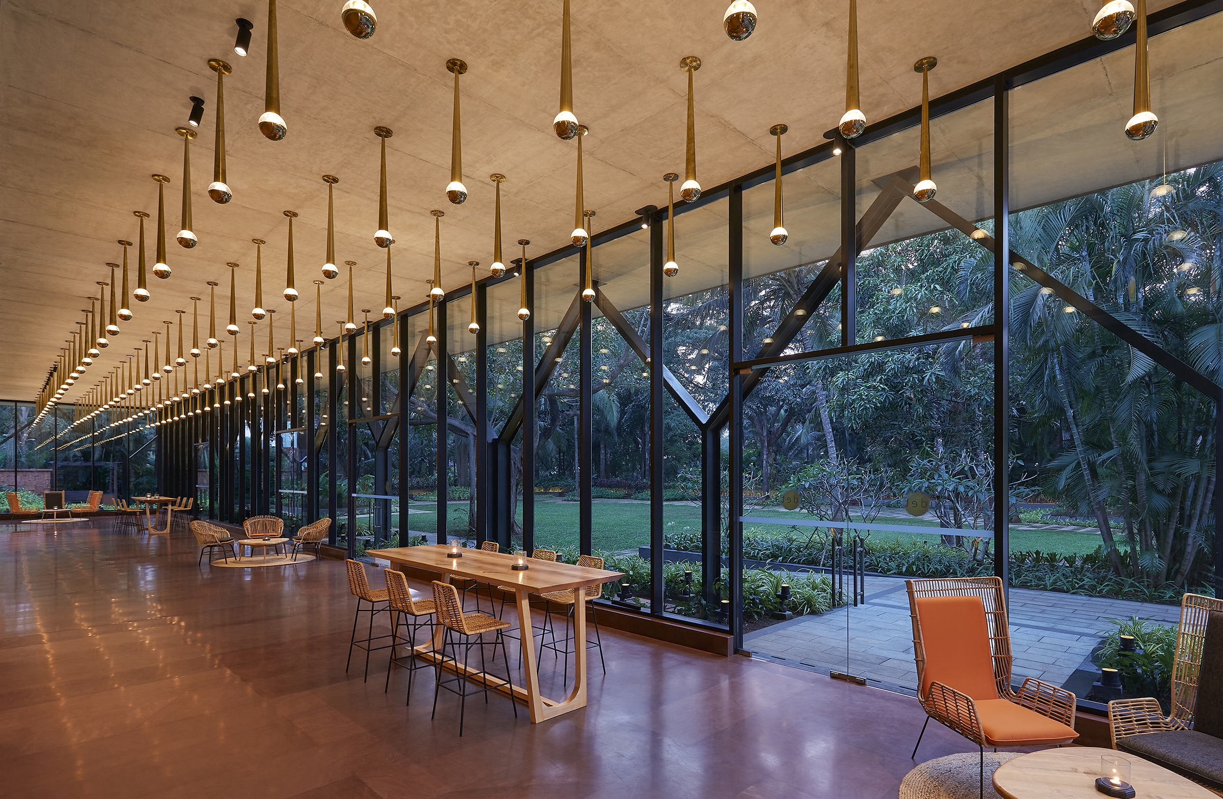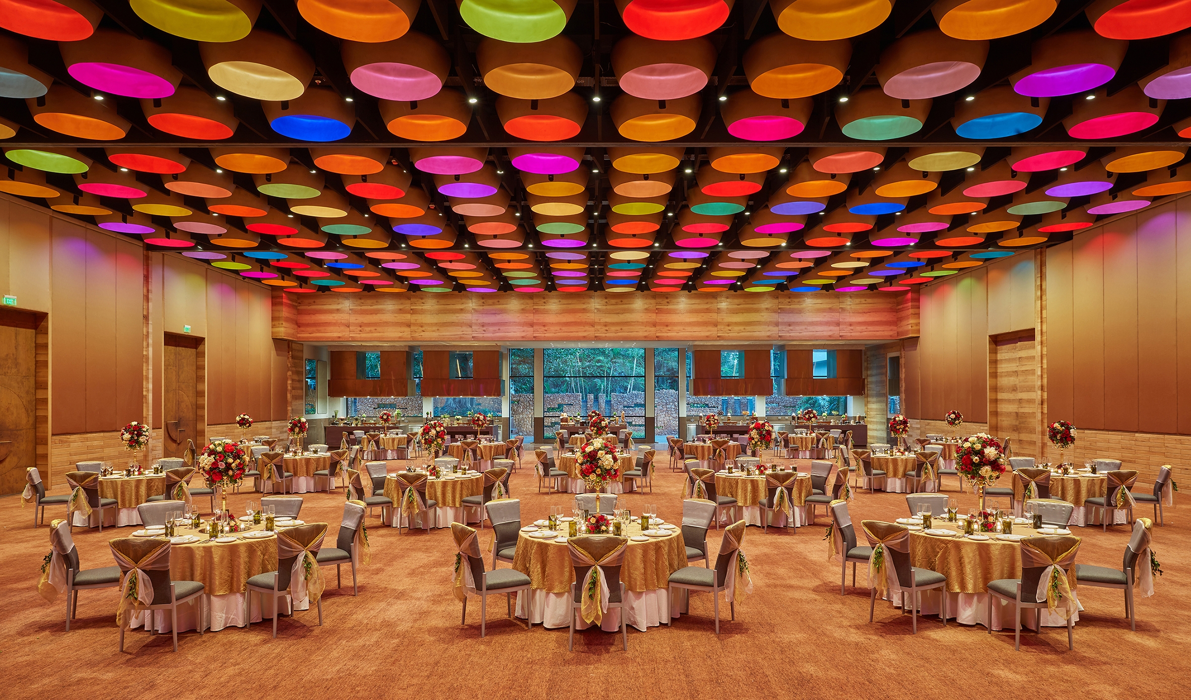 Entry DescriptionUdeta is a new banquet hall addition to an existing 5-star luxury resort. It includes an L-shaped 3,600SF Pre-Function Hall that wraps around 8,400SF Ballroom with a Live Kitchen at one end. Cohering with the architecture, the lighting for the Pre-Function Hall is conceived to enhance the inside-outside experience. The concrete slab is floated through uniform uplighting, and inner walls are celebrated with light, collectively transforming the space into a luminous box. A bespoke brass pendant, referring the classic half-chrome incandescent bulb, was conceived and designed by the lighting designer to provide the uplighting of interior slab. The ceiling of Ballroom was envisioned by lighting designer as a field of luminous volumes floating in black void. To realize this, a bespoke dome pendant with tapered-in shape was specifically designed, that included a custom light source consisting of individually-addressable LED module providing tunable-white and color-changing light, enclosed within a translucent globe. Warm-white lighting is achieved on walls and tables even in the color mode for ceiling. DMX system for domes and DALI system for rest were provided for full range of control.