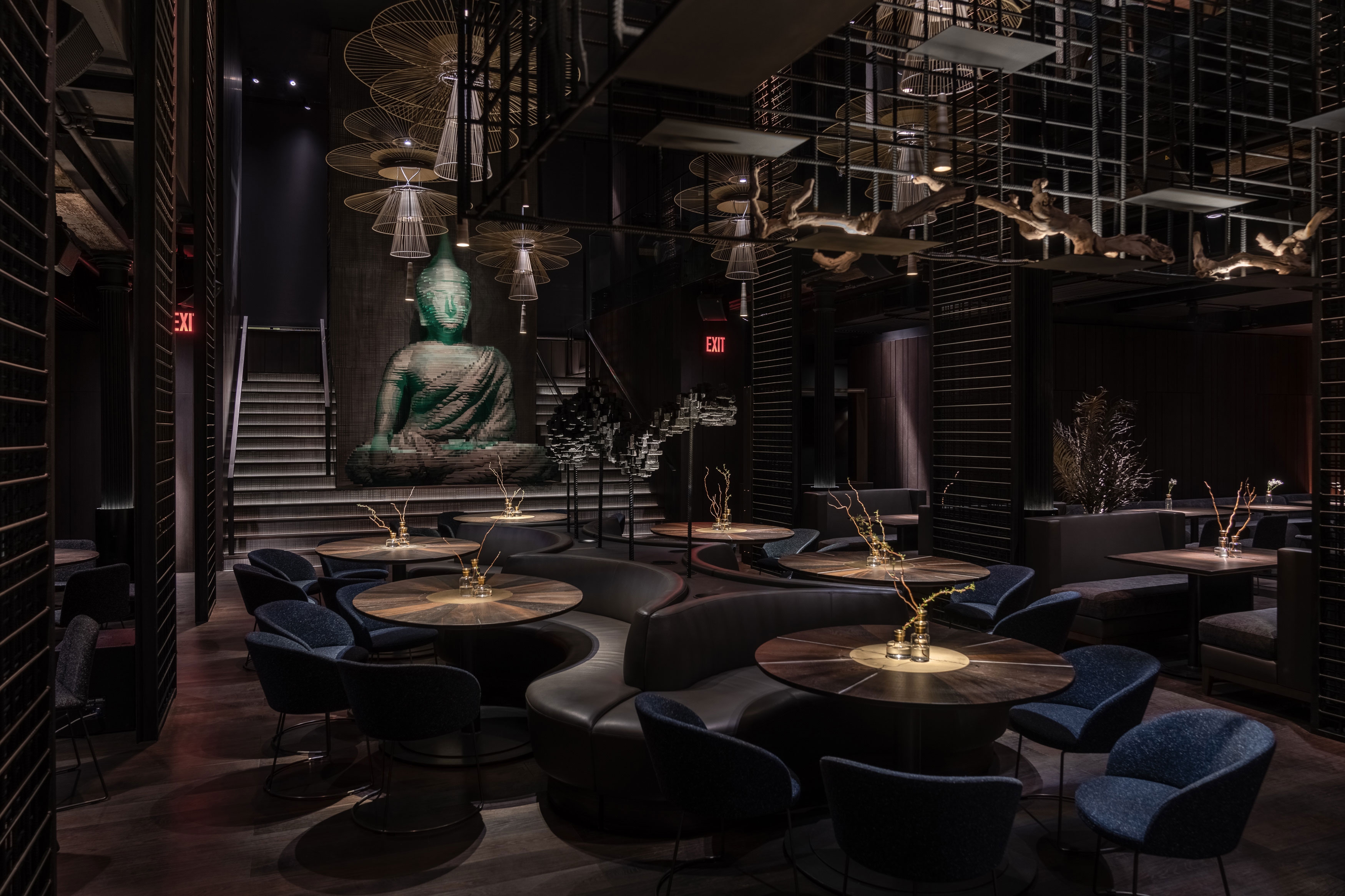 Buddha-Bar is an iconic spot right in the heart of New York. Its interior includes aged materials and reflects the concept of reincarnation.
