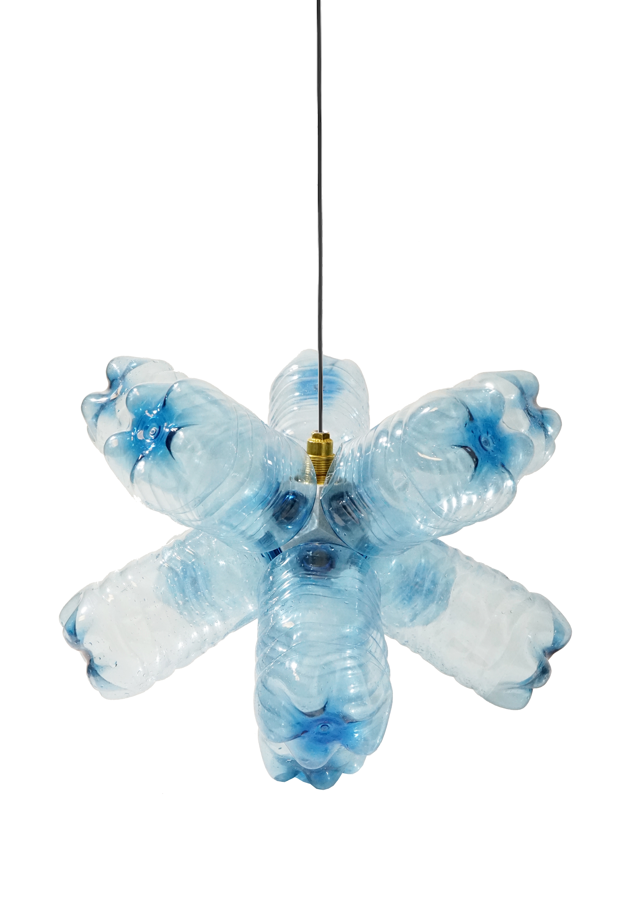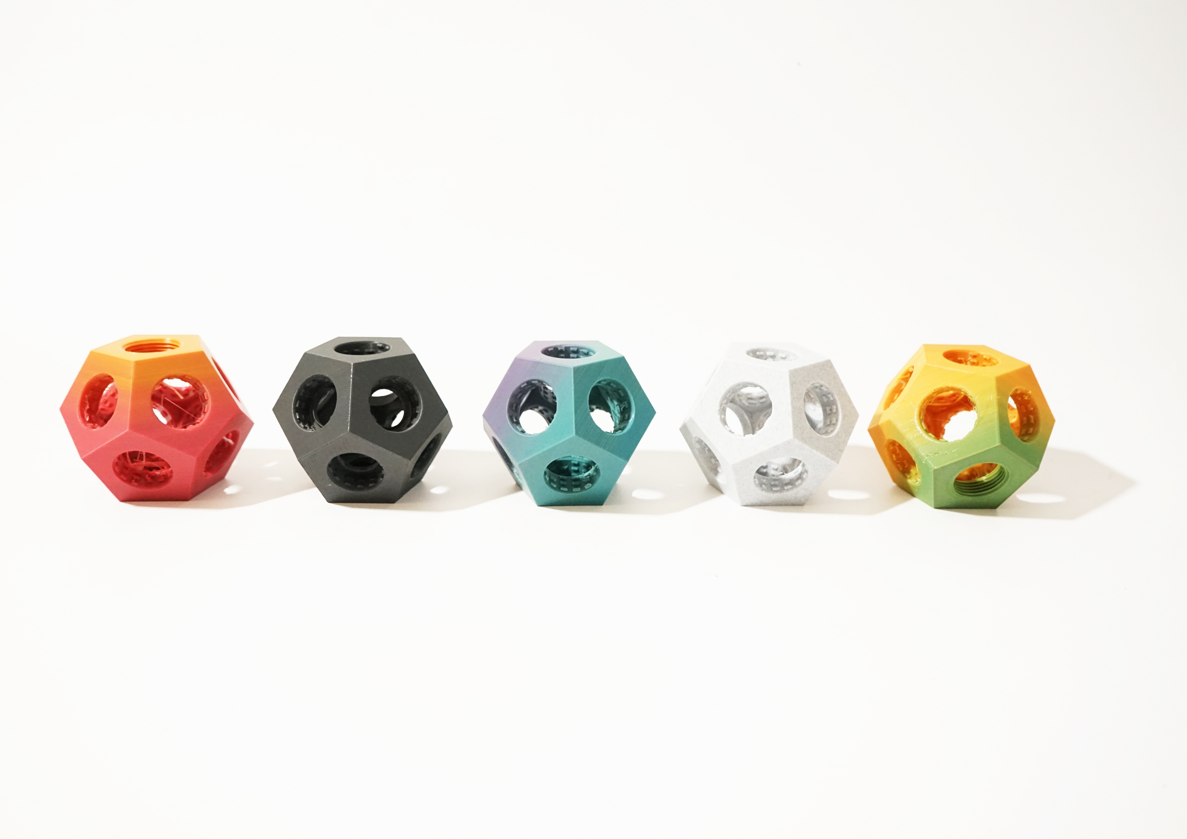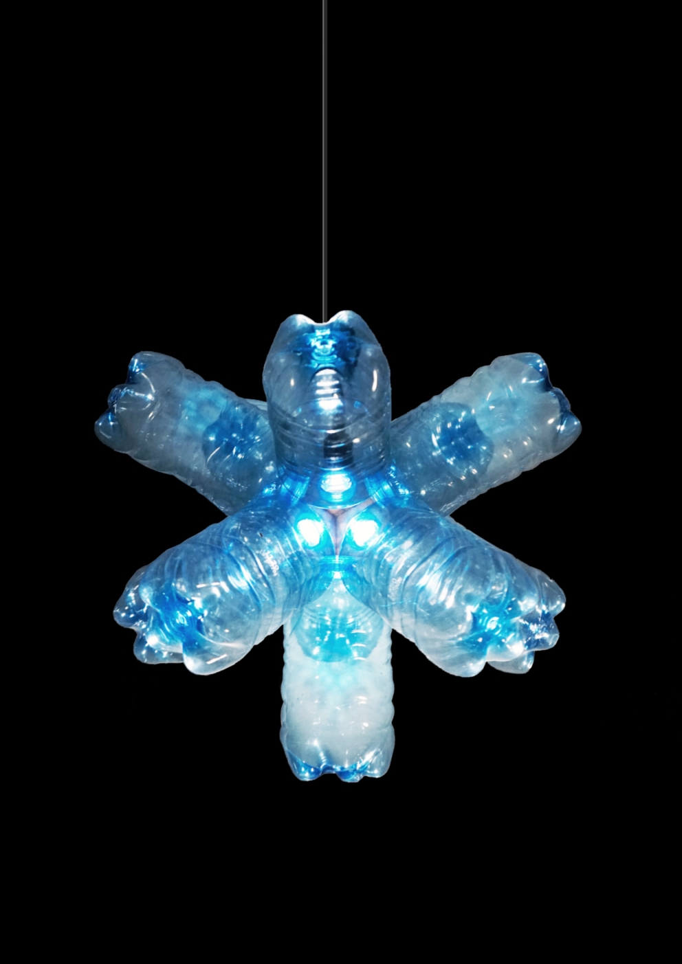 The Tappodario is a 3D printed light object that turns used plastic bottles into customizable designer lamps! The project combines the re-use of old objects (let’s not call them waste) with the creation of something new. The individual production process and the assembly of the light object are an essential part of the “user journey”. This involvement in the creation of the Tappodario generates a strong identity with the product, which contributes to a hopefully long relationship between user and product. The Tappodario is inspired by a chandelier and uses recycled 3D printing filament to integrate all technical and functional aspects of the design in a coherent form. The resulting shape of a dodecahedron enables a compact radial arrangement of the bottles as well as effective illumination of the light object, which radiates evenly outwards from the center of the Tappodario. A broad variety of plastic bottles can be screwed in via the integrated standard cap profile. In addition, a E14-thread for the lamp socket is integrated in the 3D-model. Only the recycled material of 22 screw caps is needed to print a Tappodario, without any additional support structure.