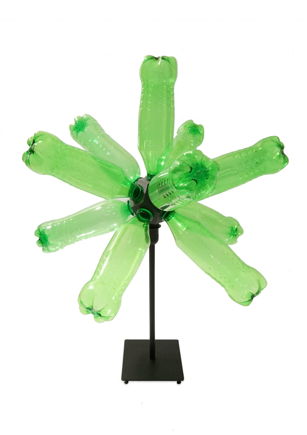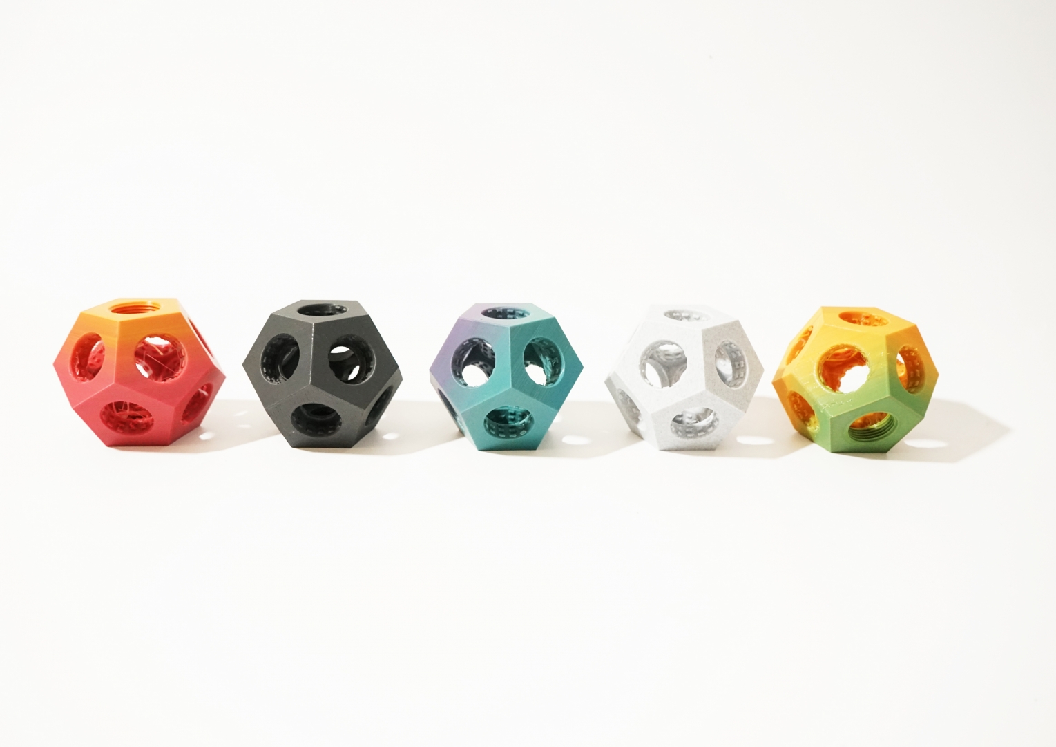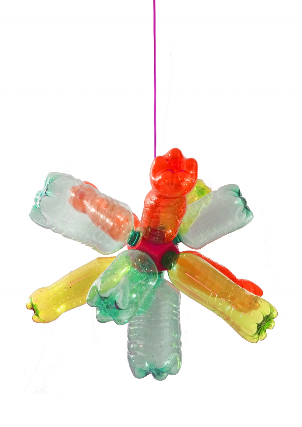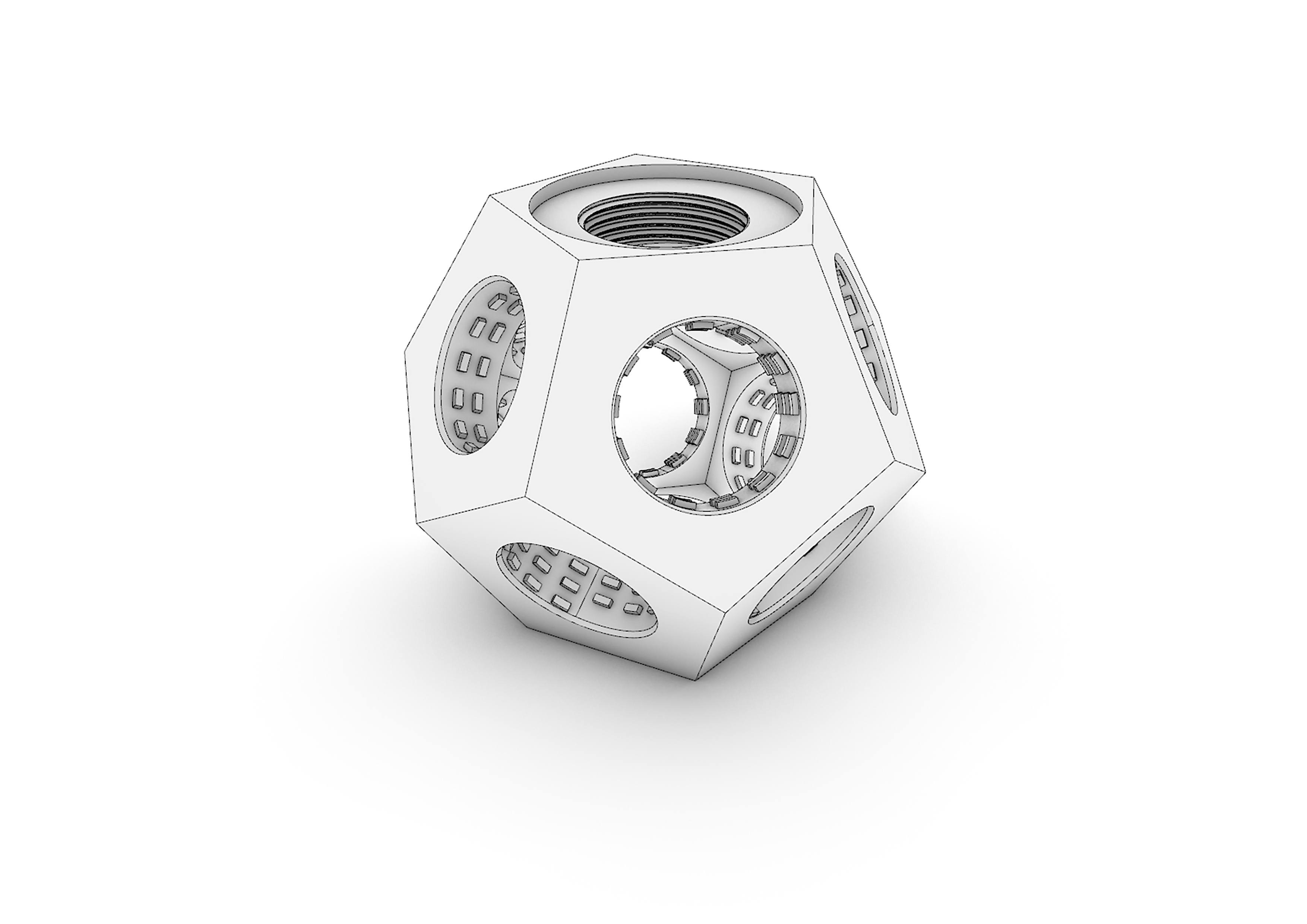 The Tappodario is a 3D printed light object that turns used plastic bottles into customizable designer lamps! The project combines the re-use of old objects (let’s not call them waste) with the creation of something new. The individual production process and the assembly of the light object are an essential part of the “user journey”. This involvement in the creation of the Tappodario generates a strong identity with the product, which contributes to a hopefully long relationship between user and product. The Tappodario is inspired by a chandelier and uses recycled 3D printing filament to integrate all technical and functional aspects of the design in a coherent form. The resulting shape of a dodecahedron enables a compact radial arrangement of the bottles as well as effective illumination of the light object, which radiates evenly outwards from the center of the Tappodario. A broad variety of plastic bottles can be screwed in via the integrated standard cap profile. In addition, a E14-thread for the lamp socket is integrated in the 3D-model. Only the recycled material of 22 screw caps is needed to print a Tappodario, without any additional support structure.