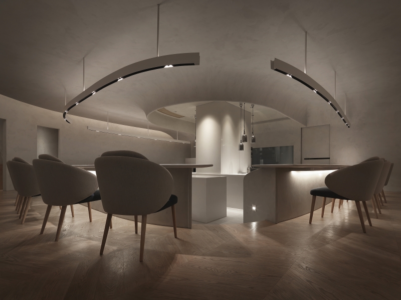 The Space utilizes a subtractive design with hidden ceiling lights that create a sense of subtle, aesthetic beauty.