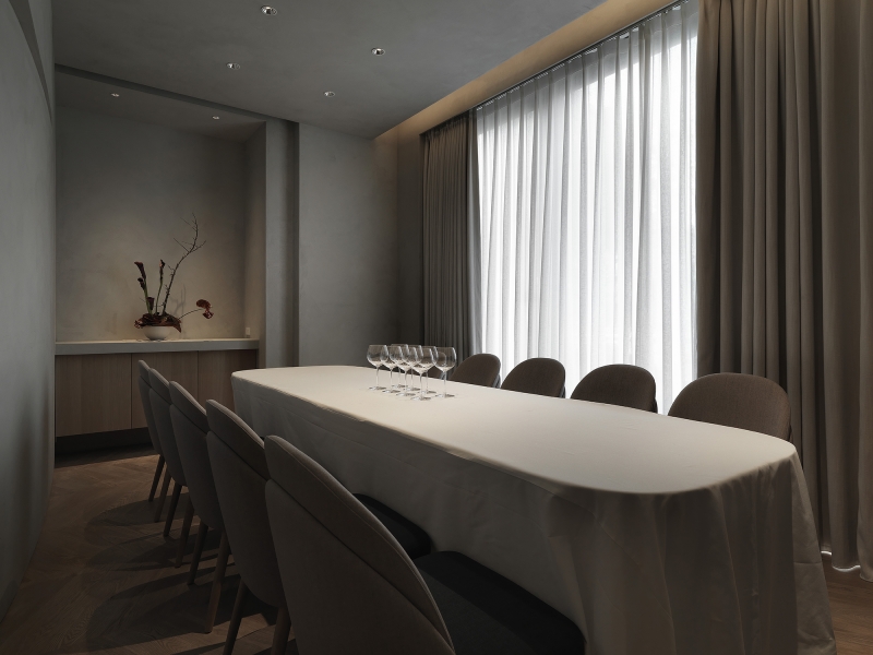 Subdued lighting gives the private dining room an elegant and relaxing vibe.