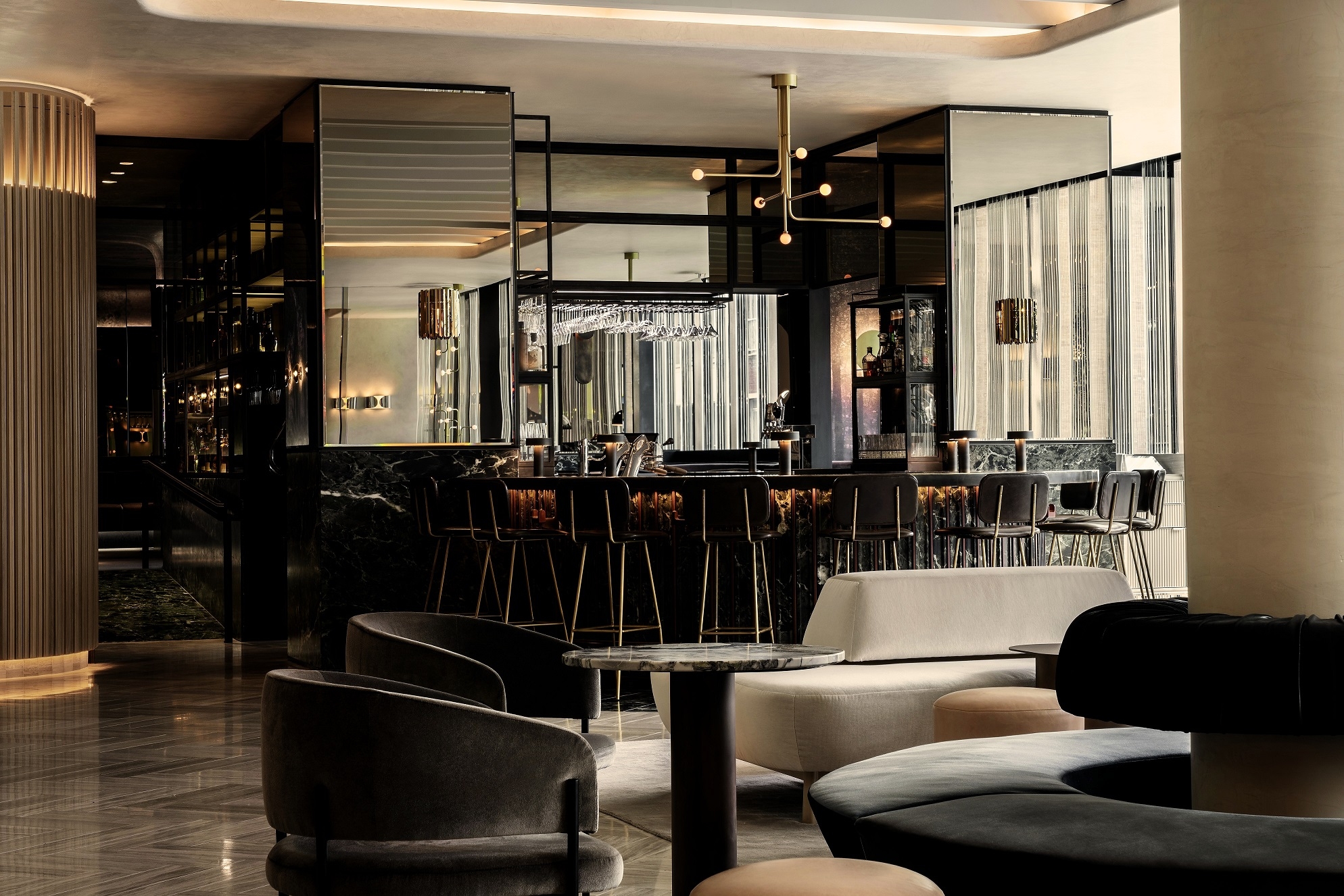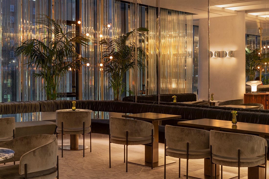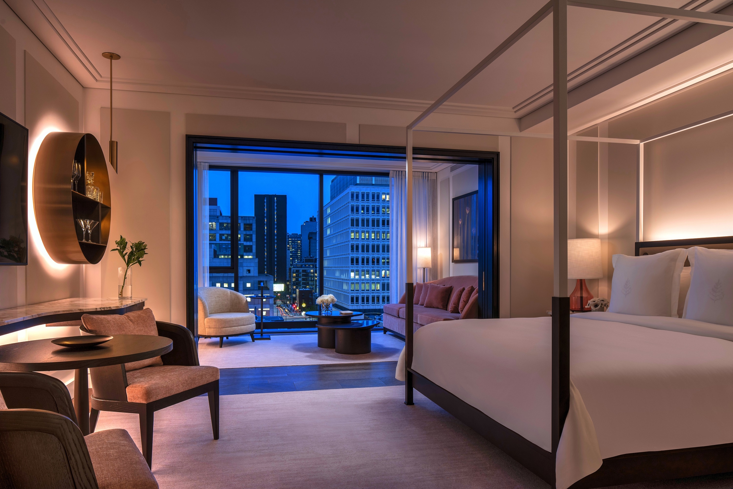 Entry DescriptionThis new-construction luxury brand hotel sits in the Golden Mile of Montreal, Quebec. The 18-story volume of floor to ceiling glass curtain walls and up-lit golden bas-reliefs façade houses several lounges and lobbies, meeting rooms and ballrooms, fitness rooms and terraces, a restaurant, bar, spa, atrium, 169 hotel guestrooms, 18 private residences and commercial spaces within its 377,000 square feet. We met this challenge by proposing warm-dim technology throughout the hotel that is balanced and controlled through a central dimming system. An immense amount of studying and translating the vision and details of the architect and designer was key to the effective positioning and placement of all linear sources. All sight-lines and potential for glare were eliminated by efficient planning and detailing. The majority of the lighting throughout the hotel is fully concealed integrated linear lighting that expresses and showcases the architectural elements. Linear light sources matching the architectural lighting was implemented into decorative sources to ensure cohesive color temperature throughout the hotel.