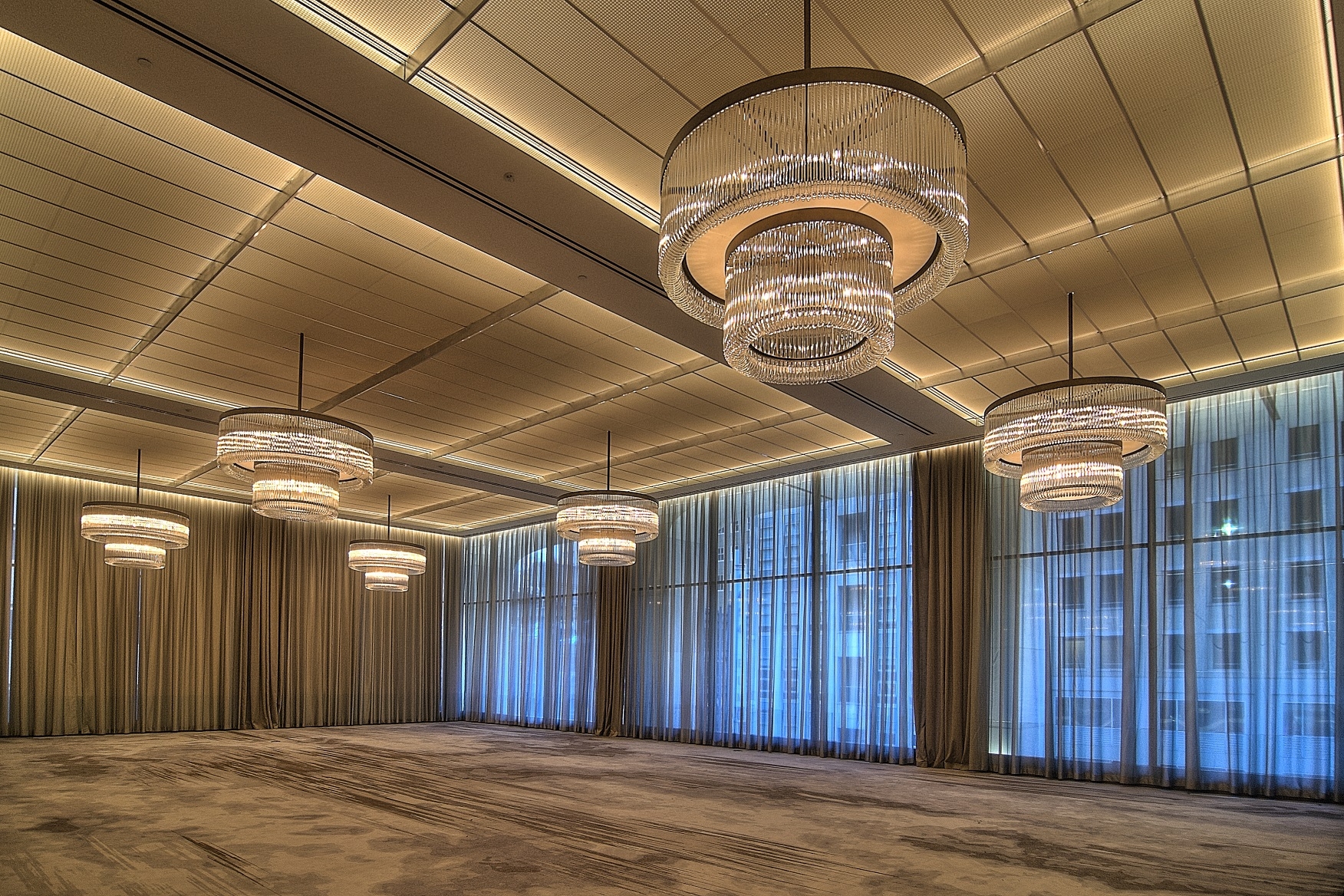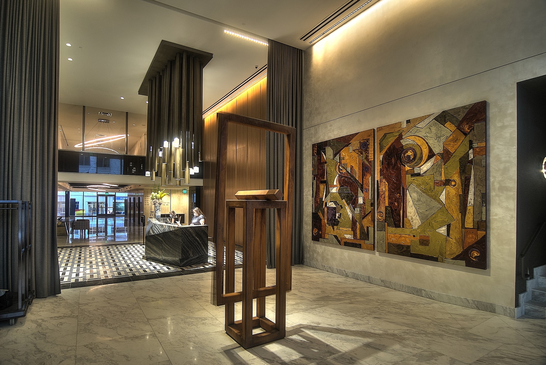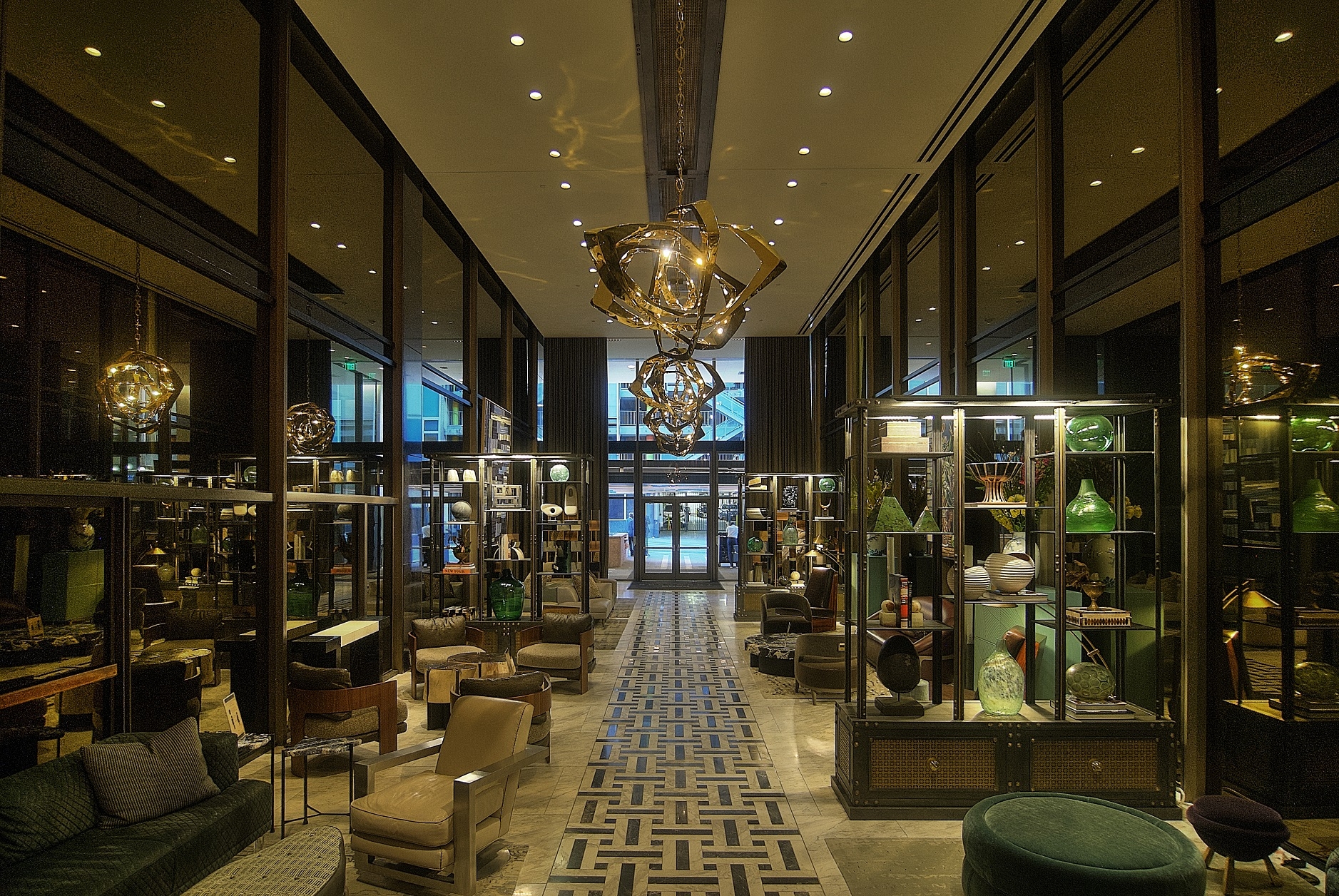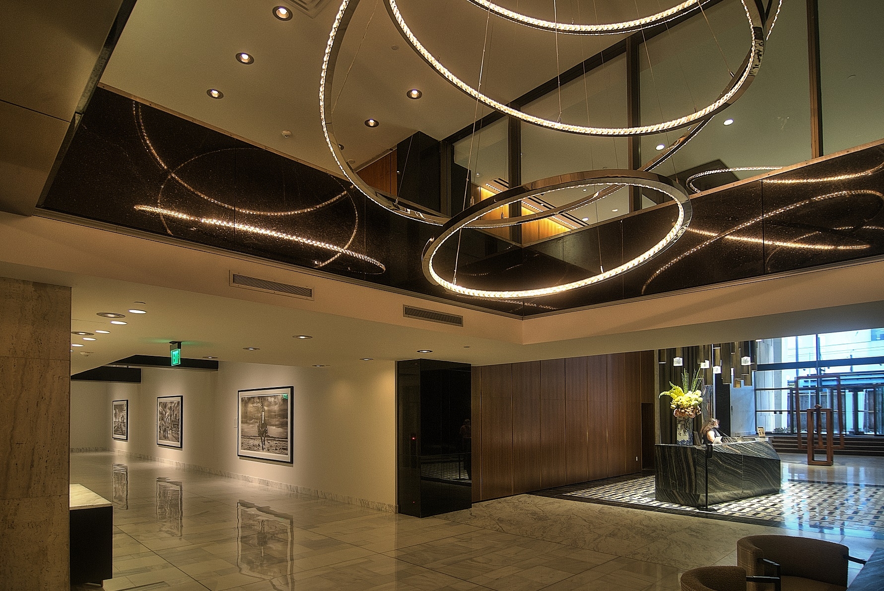 The design concept of the interior architectural lighting was intended to showcase all of the beautiful artwork and accentuate the featured areas while offering adequate ambient lighting using mostly indirect lighting for visual comfort. All decorative lighting and lamps were reviewed by our team to ensure the correct warm color temperature matched the architectural lighting. We were faced with several challenges as this building is considered a historic building. For the lighting design, that meant historical compliances were enforced and existing downlight locations and fixtures were reused in several public space areas.