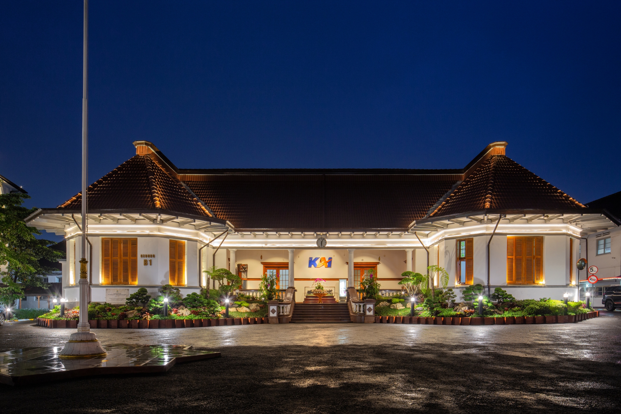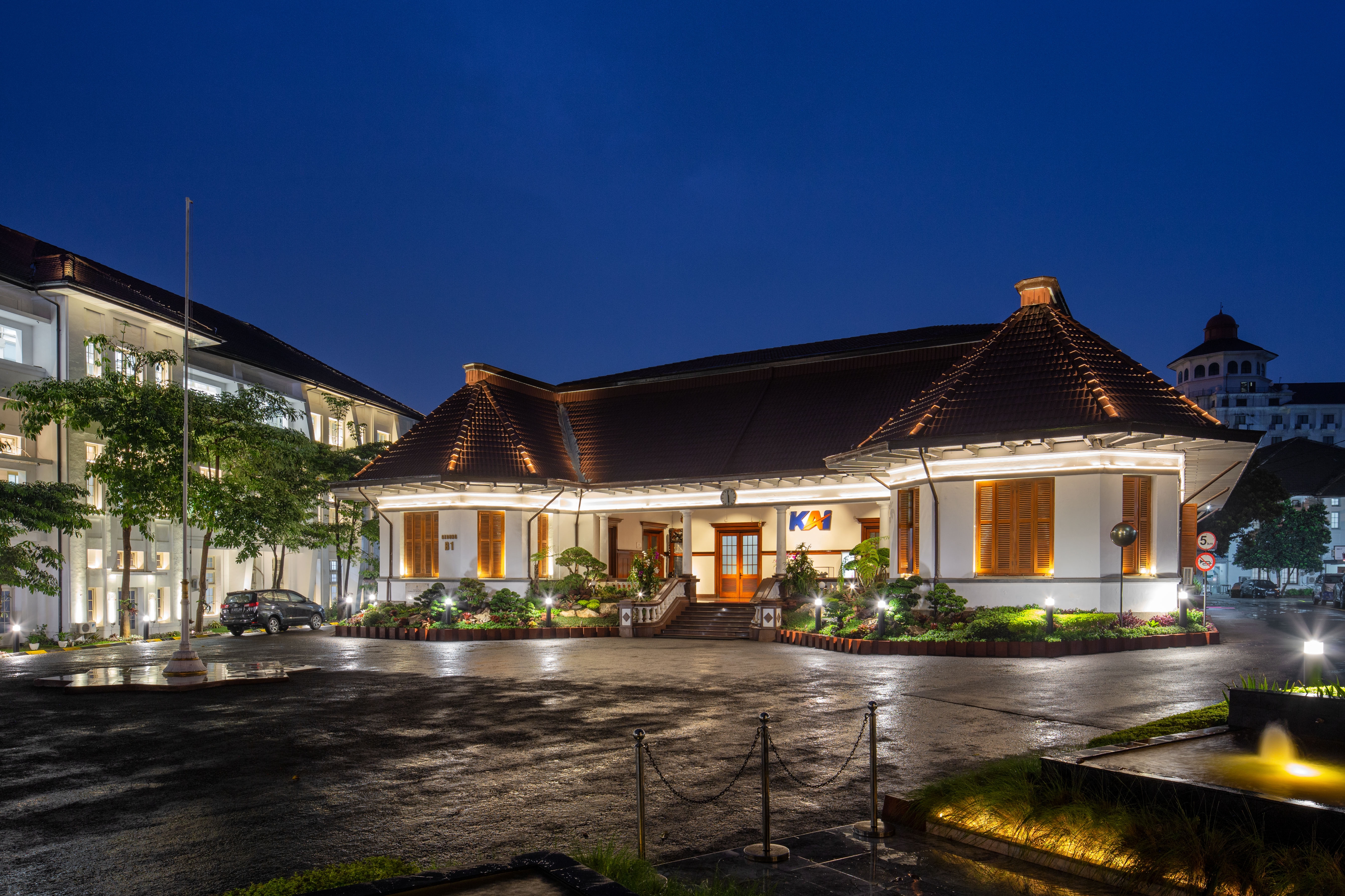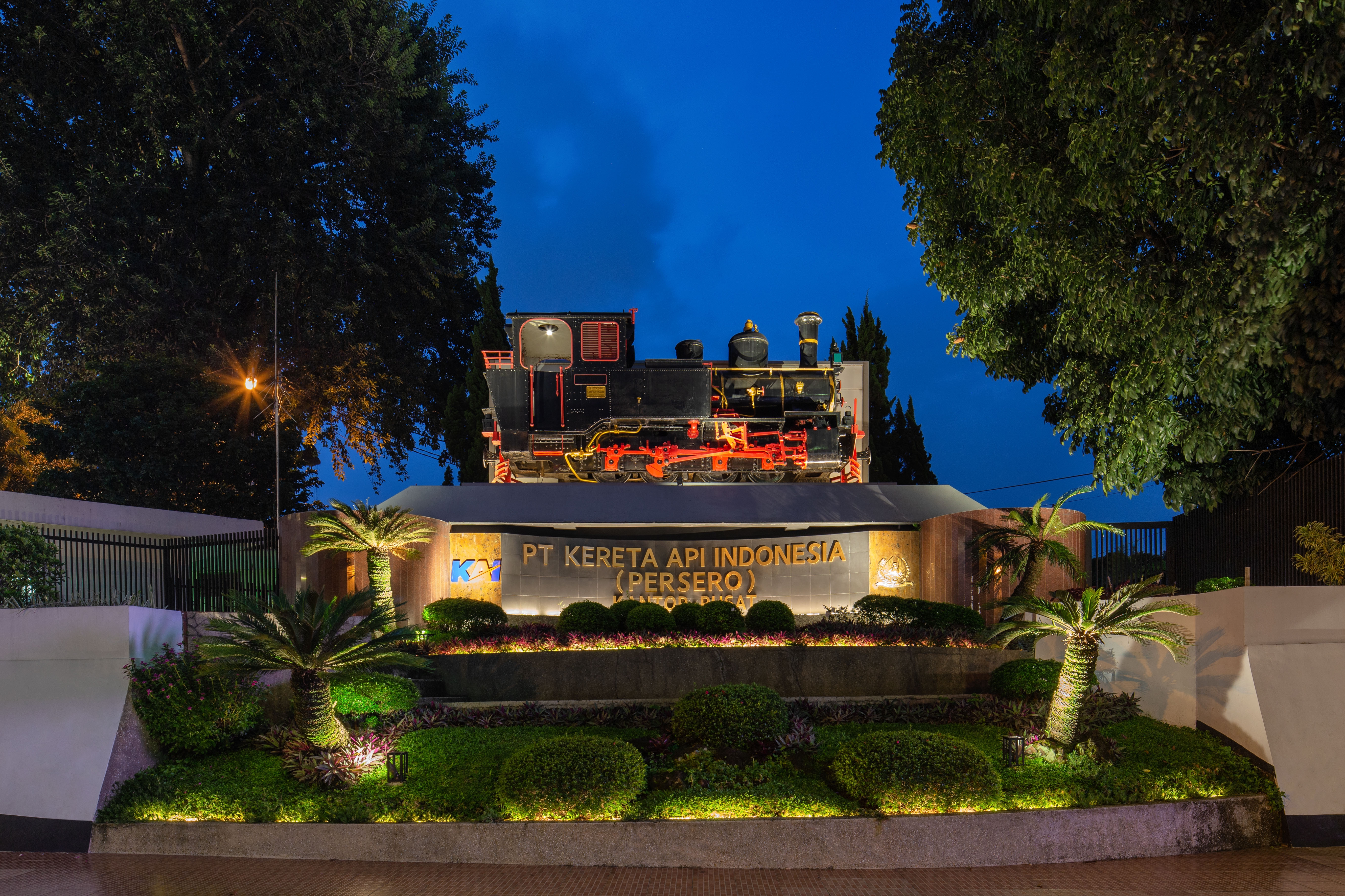 Kereta Api Indonesia (Persero) or Indonesian Railways Company's main office is located in Bandung. Based on Dutch map on 1905, the main building was used to be a hotel called Villa Maria. Railways company started to use this building as its office in 1916. Lighting Designer was appointed to do lighting refurbishment on the main facade, the locomotive monument and the inscription monument.