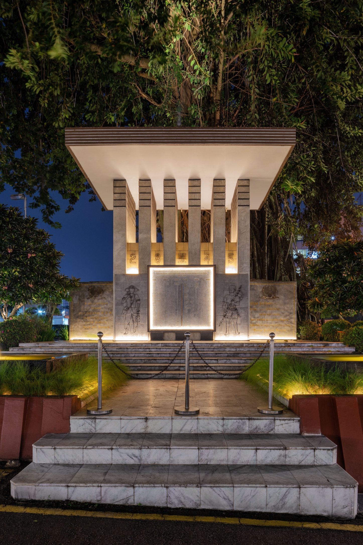 Custom L shape aluminium with LED Strip is also used to wash the inscription monument with soft linear indirect lighting