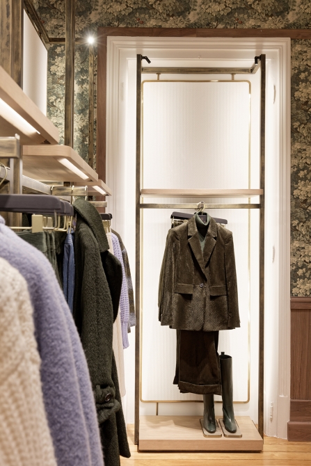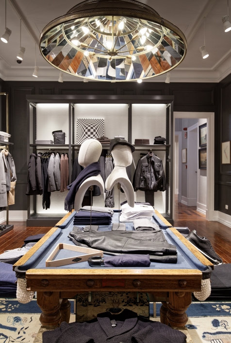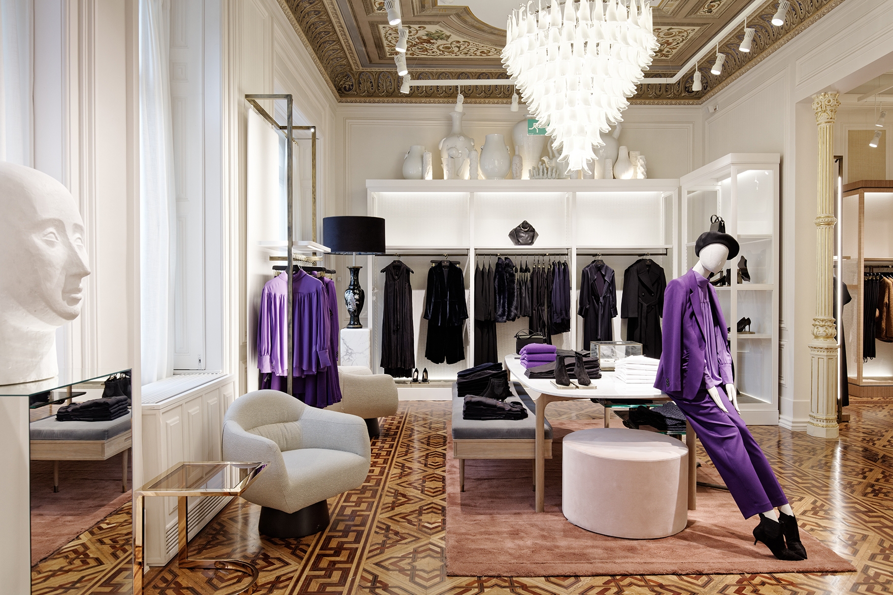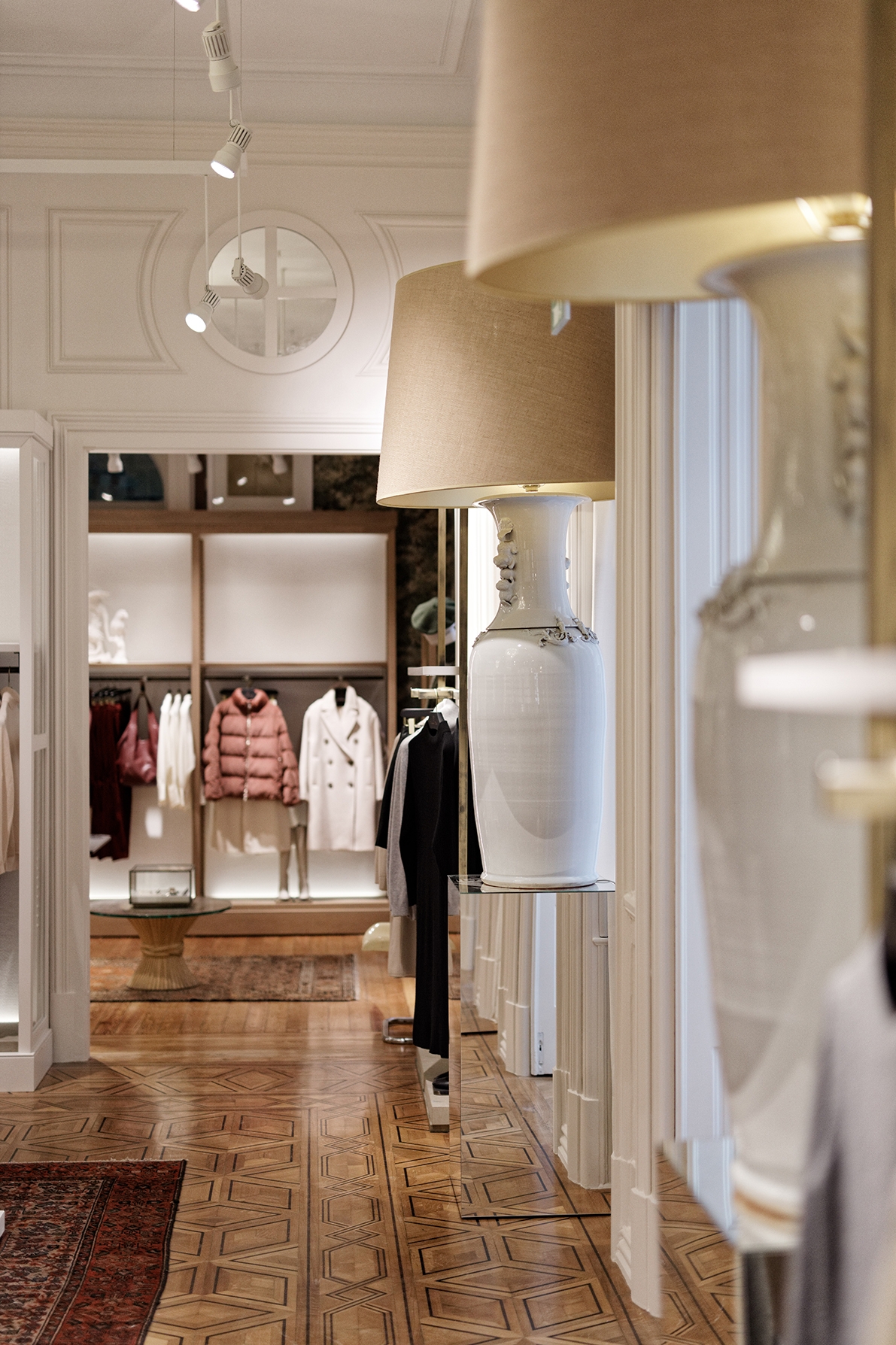 The mission of interior lighting is to meet the commercial needs of the brand respecting architectural value of the building, integrating both aesthetic and functional requirements.