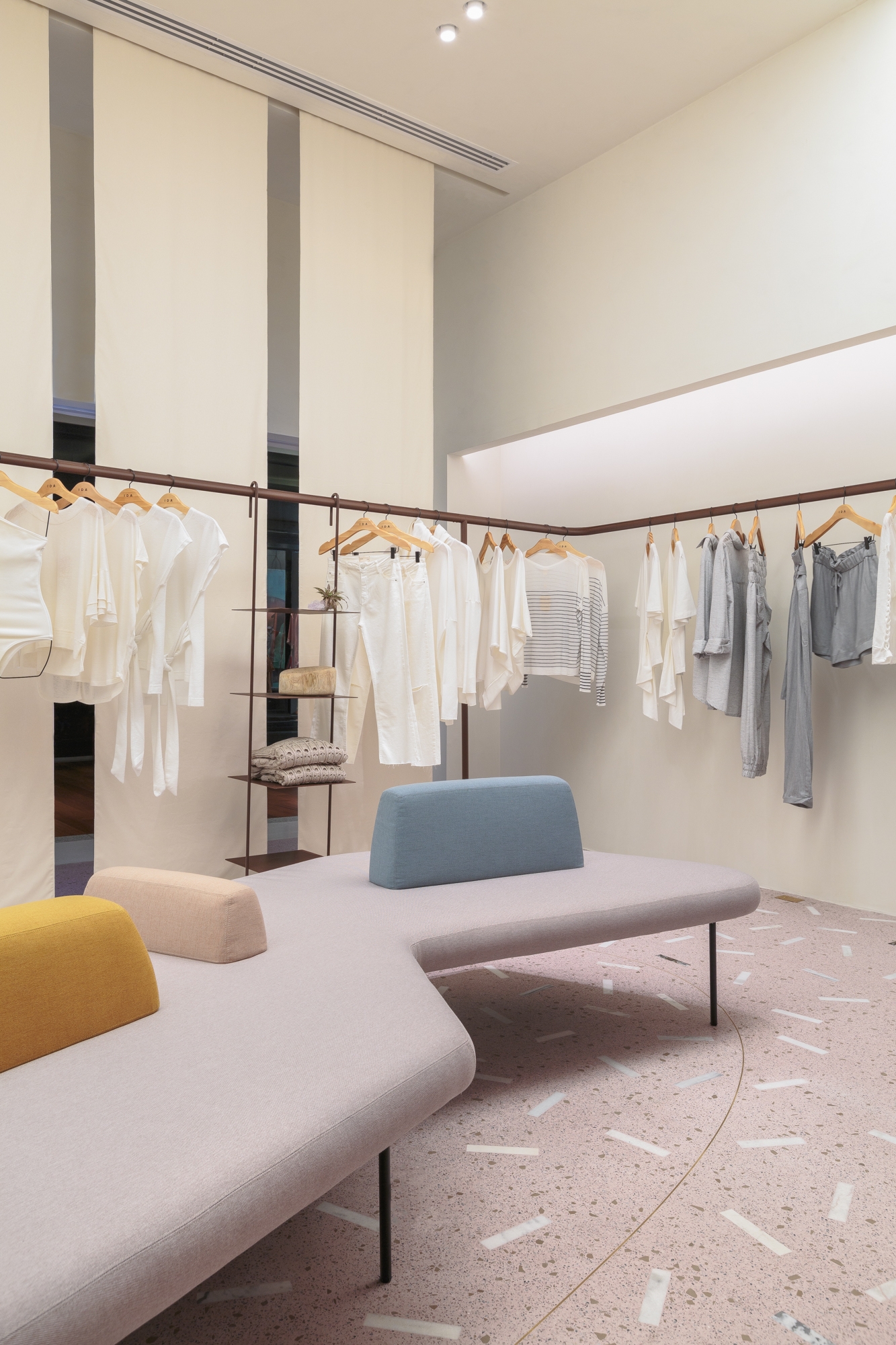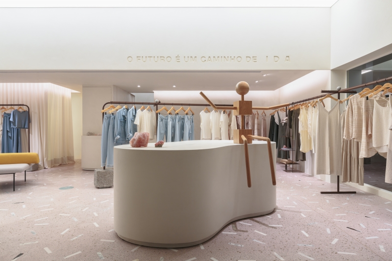 In order to reflect the lightness and innovation of the brand IDA, its first store, located inside a shopping mall, received as its main lighting fixture a luminous ceiling that aims to bring qualities of natural light to the space.
