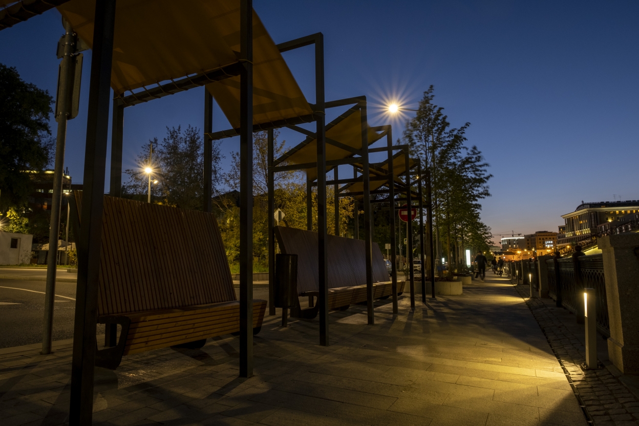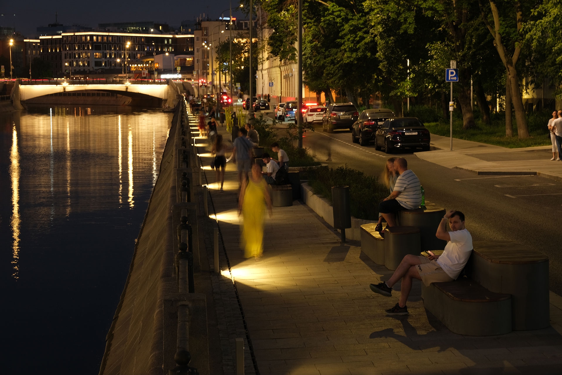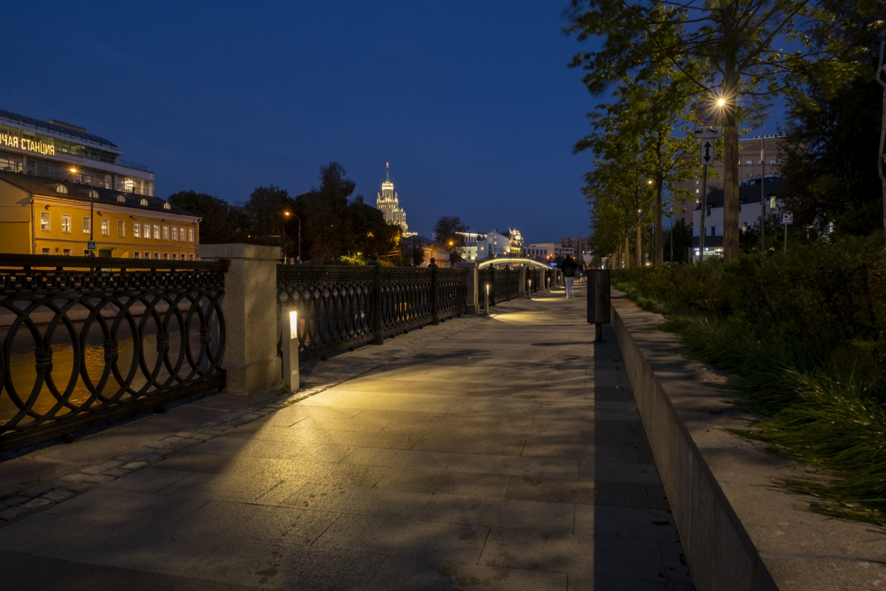 • Make sure that lamps and lighting effects would not block the views of Moscow for people walking along the banks. Use light as passive and unobtrusive background for contemplation of the city, river and sky.