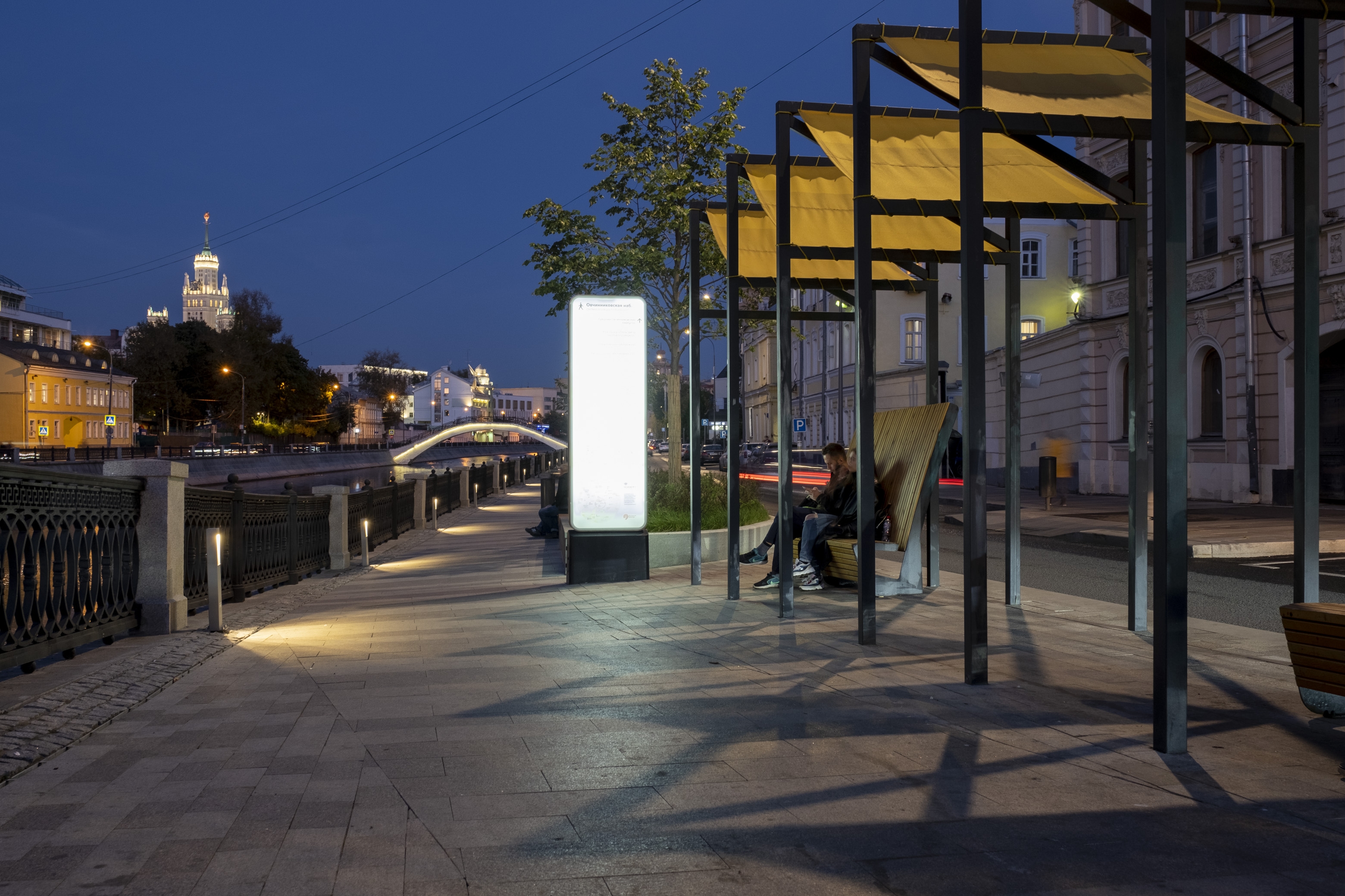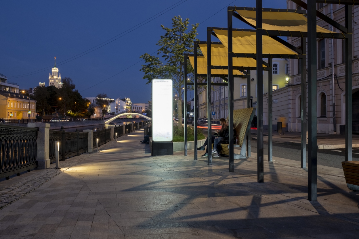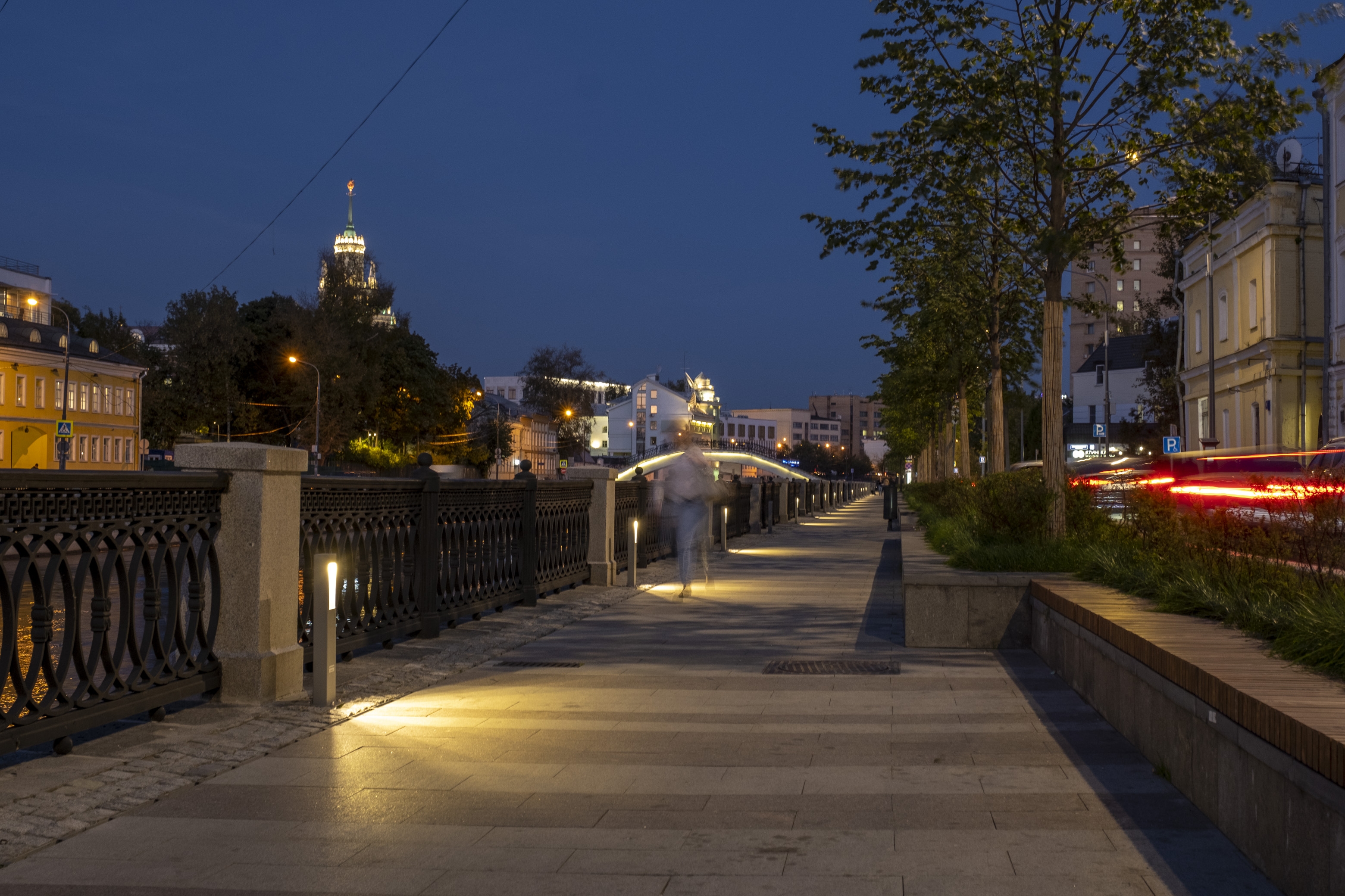 • Make sure that lamps and lighting effects would not block the views of Moscow for people walking along the banks. Use light as passive and unobtrusive background for contemplation of the city, river and sky.