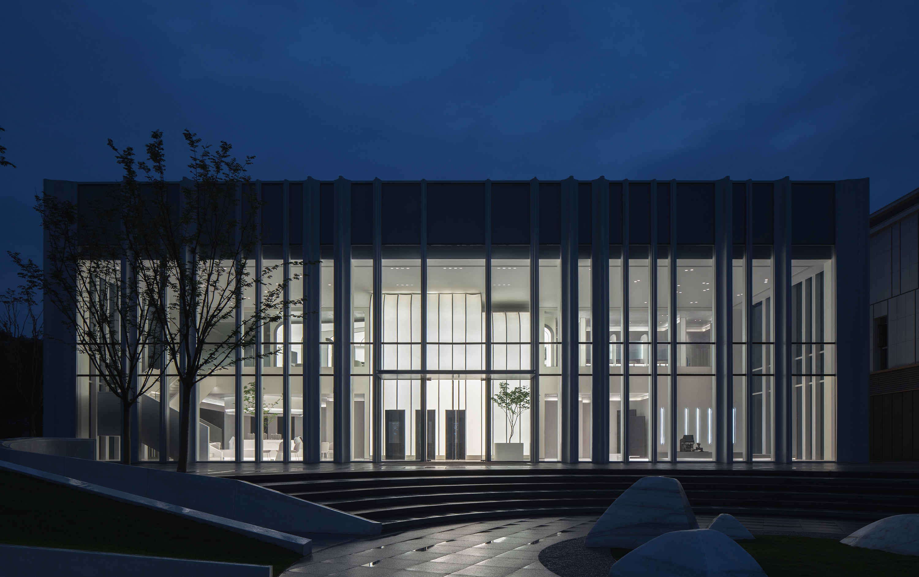 Entry DescriptionDesigned with the notion of ‘Soft Technology’ to celebrate a symbiotic relationship between human, nature and technology, sculptural elements with extensive organic luminous curvaceous surfaces are used in this sales gallery to shape cocoon-like spaces and to be a focal point as well as create a stark contrast with the rectilinear façade envelope. A key lighting challenge was to illuminate this beautifully while also fulfilling functional needs. A lighting environment expressing an embracing softness was essential for the overall mood.