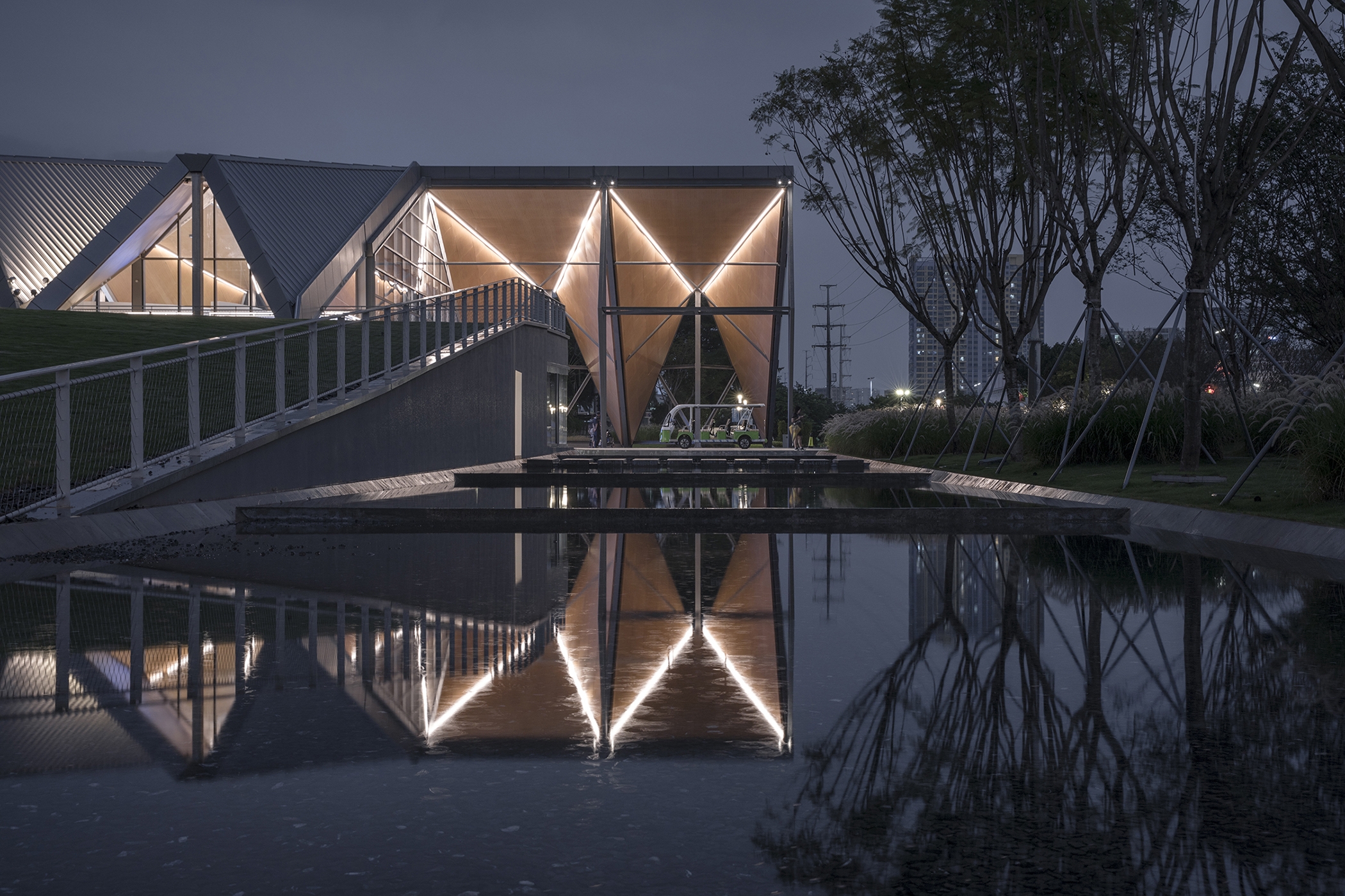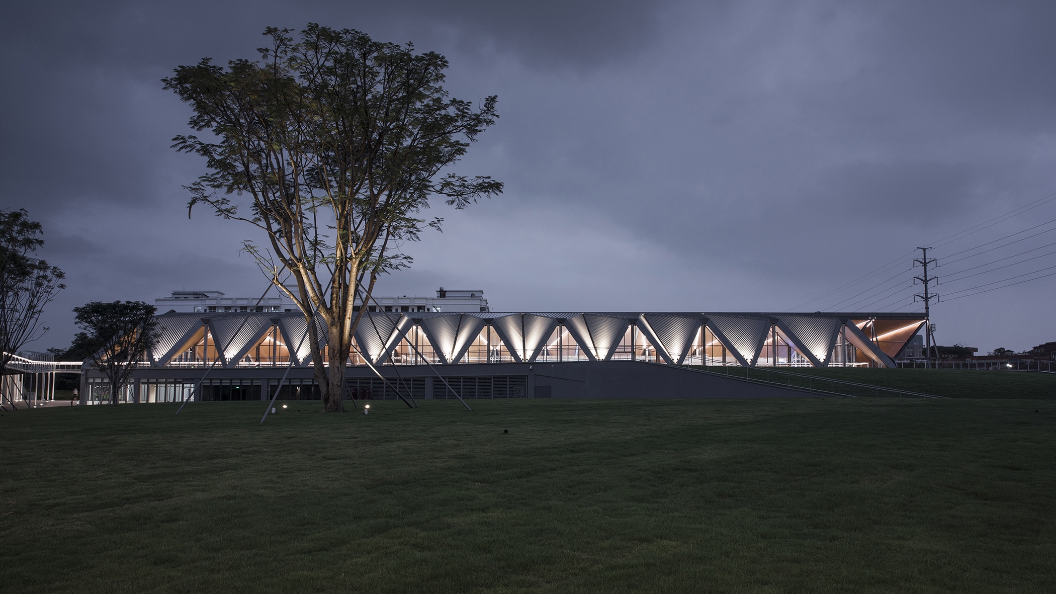 Architectural lighting is based on the modeling of the folding board of the building. Combined with the design of indoor lighting, illuminates the inside and outside of the folded roof to strengthen the sense of the sequence of the building.