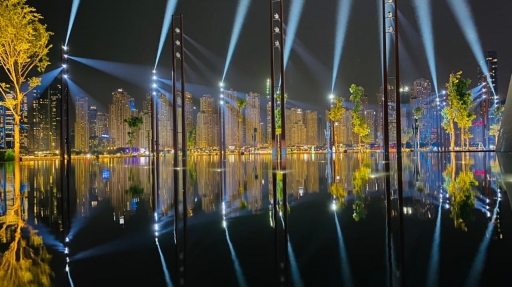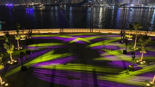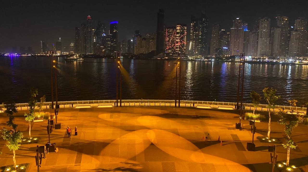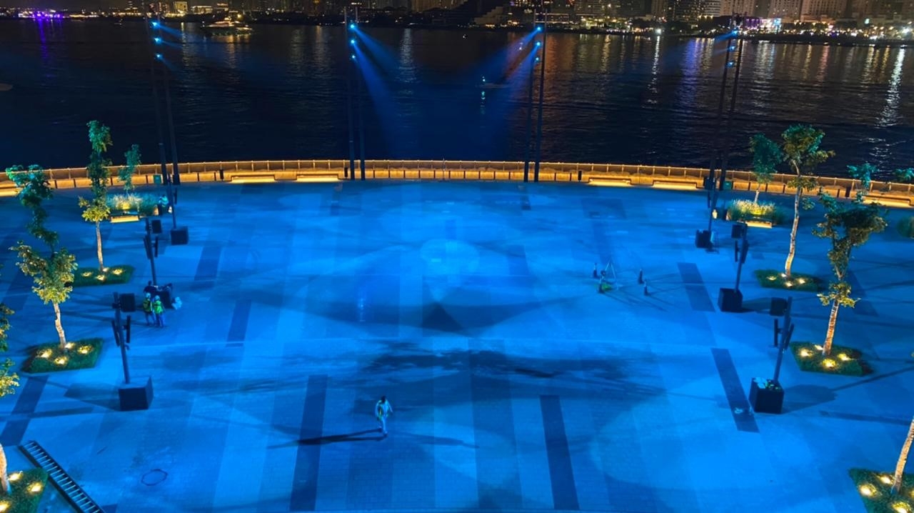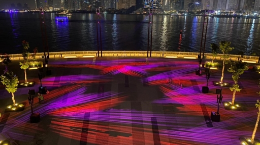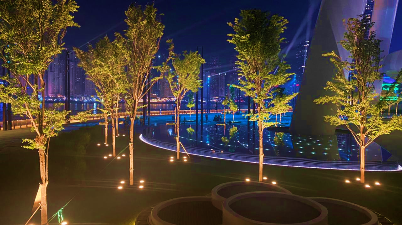 Ain Dubai Plaza lighting design represents the apogee of the vibrant lifestyle destination which Bluewaters Island is known for. As the visitors approach Ain Dubai, the drama and excitement of a world-class retail and entertainment zone which is evident throughout the Bluewaters retail strip, gradually builds up and culminates in a dazzling display of colours and animated light show in the plaza. Complimenting the fun and colorful lighting principles of the Bluewaters retail strip, the plaza lighting comprises of traditional architectural landscape lighting principles as well as dynamic entertainment lighting elements. The plaza features seventeen 16-metre-high lighting totems which complement the aesthetics of the existing streetlights along the Bluewaters retail promenade. Each totem houses a cluster of gobo projectors and a state-of-the-art moving head in order to create an exciting array of color and image projections in the plaza area. The lighting scheme aims to create a drama and to arouse interest for the visitors, whilst setting an alluring and vibrant stage for Ain Dubai, the world’s largest observatory wheel and its entertainment light show.