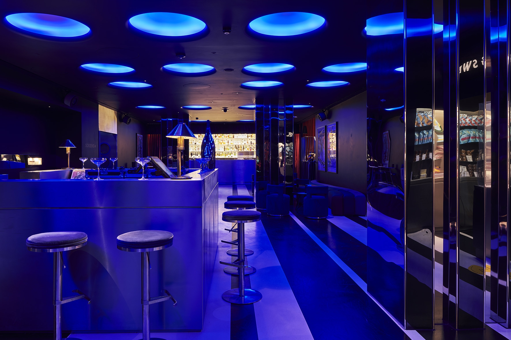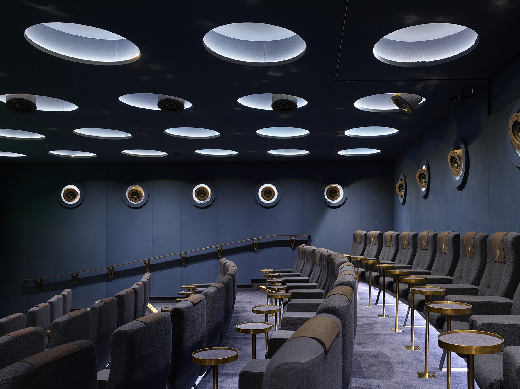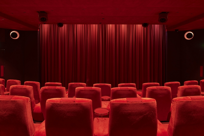 Entry DescriptionThe Cinema at Selfridges, it’s the first permanent department store cinema in the world. The interior is designed with cinema in mind and a retro flair in the detailing of the interior. The audience are transported to a flamboyant set reminiscent of a David Lynch film. The colour palette of the interior is enhanced and complimented by the dynamic lighting strategy: Accent lighting on saturated coloured surfaces, colourful light wash with RGB dynamic changes and light play between reflective panels. The lighting of the canopy in the entrance resembles the old, iconic theatre entrances as it consists of hundreds of light bulbs mounted on a reflective surface. Each screen room has its own colour (Green, Red, Blue) identity and some common lighting features such as the accent lighting on the seats and the screen curtain. Entering the bar, the visitor is immersed into a retro atmosphere with intense colours that remind the psychedelic 60s interiors. The lighting enhances the bold textures and colors and creates micro – atmospheres within the space.