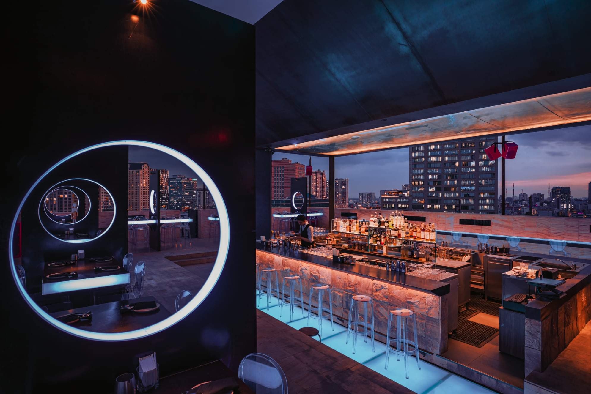 Entry DescriptionZion Sky Lounge & Dining is a unique project in the centre of Ho Chi Minh City, Vietnam initiating a Post Apocalyptic style with lighting acting as the essential factor to highlight the architecture and interior.