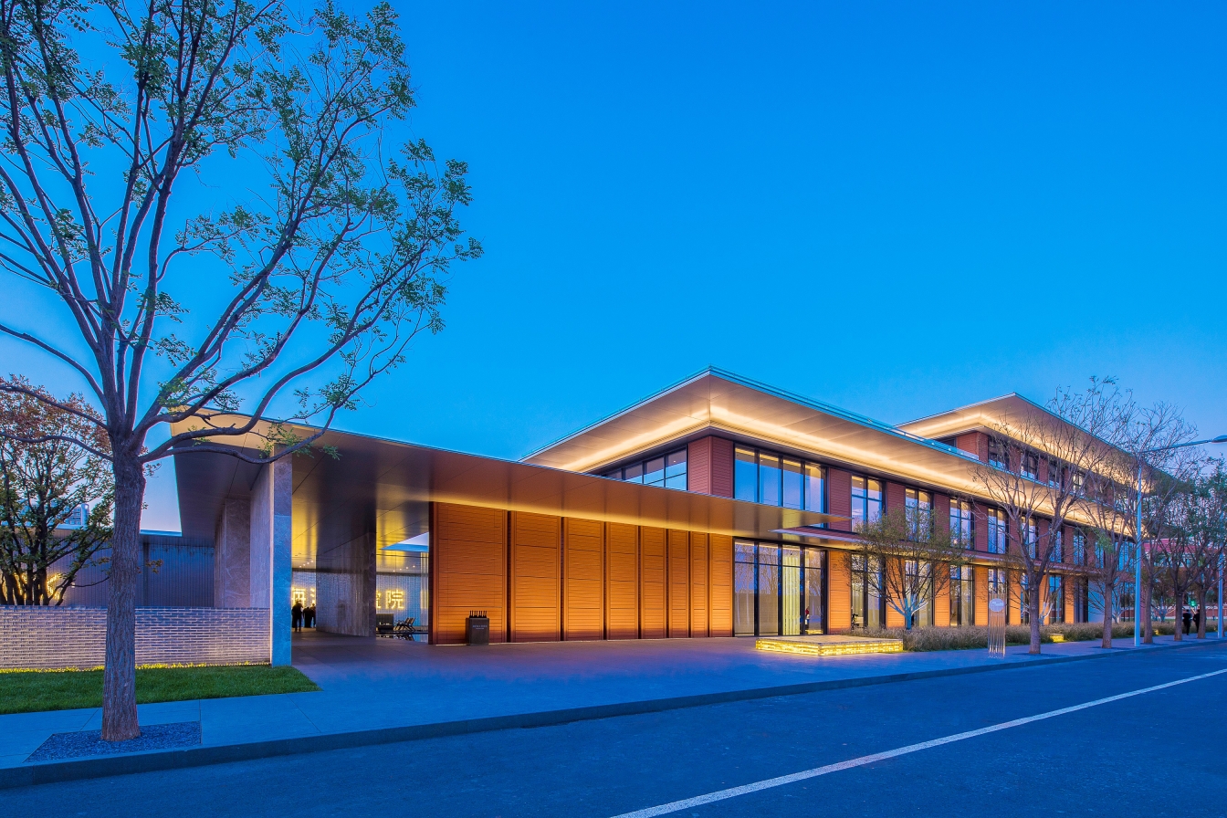 The lighting concept is trying to enhance the simple and clean theme of the building. The aluminum overhanging eave is illuminated by small profile fixtures concealed within the exterior curtain wall. An asymmetric linear trip light is used to consistently illuminate the eaves of the 2nd and 3rd floor to create a thin and floating element. The other type of linear strip light with inner shield is installed on the ground to prevent the glare and carefully wash the red terra-cotta walls and light up the 1st layer of the eave to echo with the rest of the horizontal eaves.