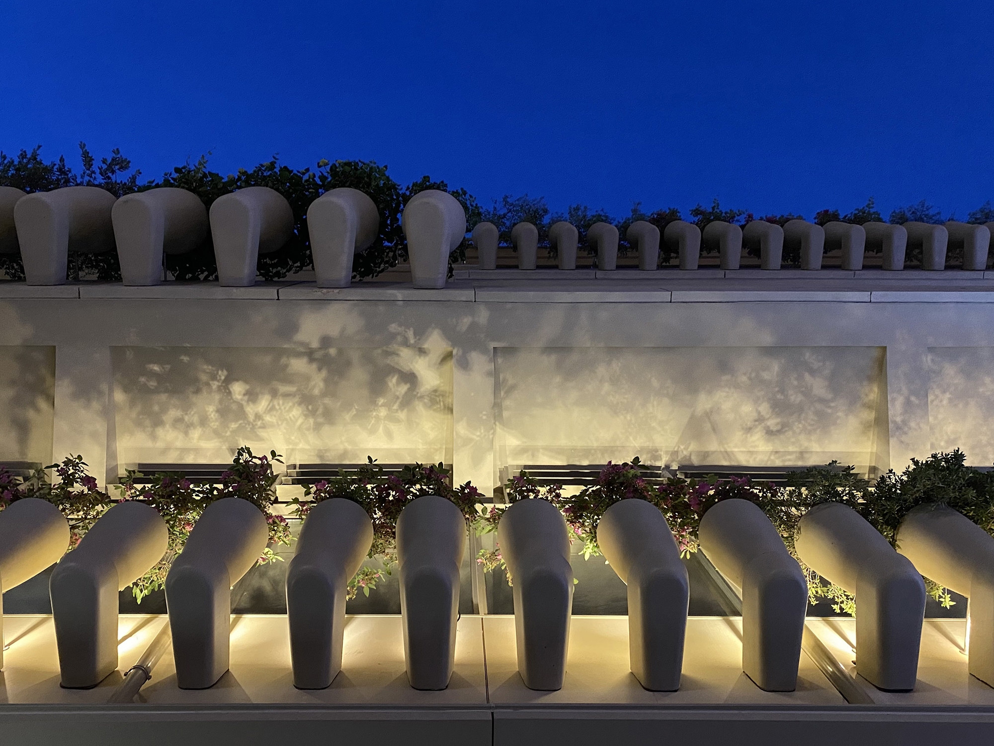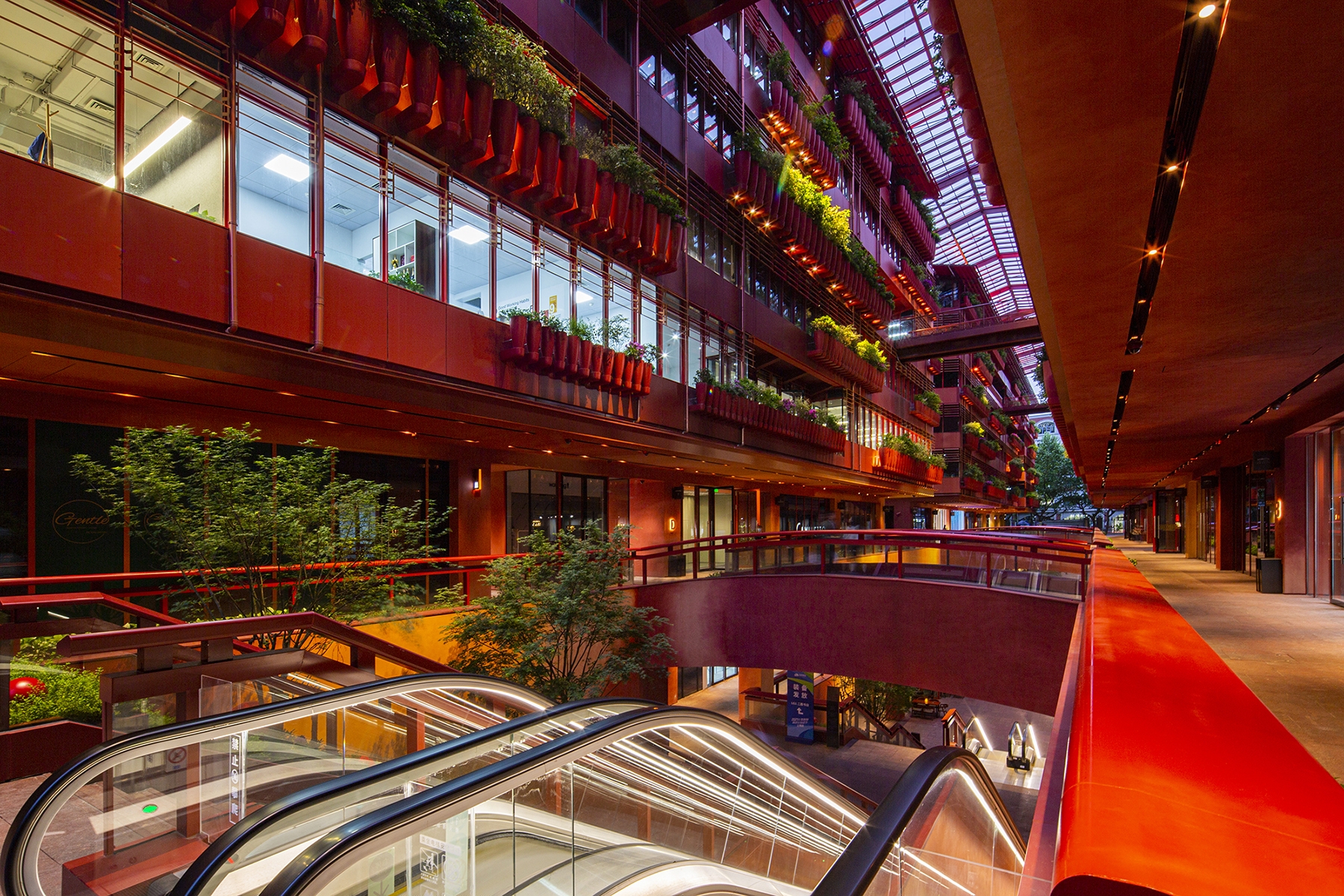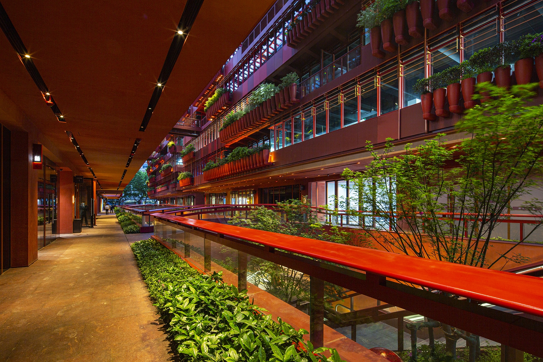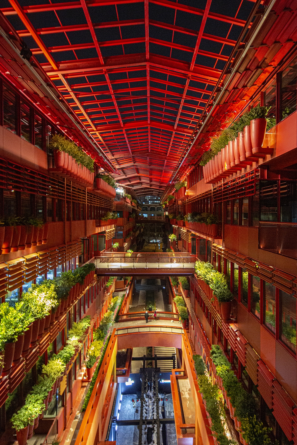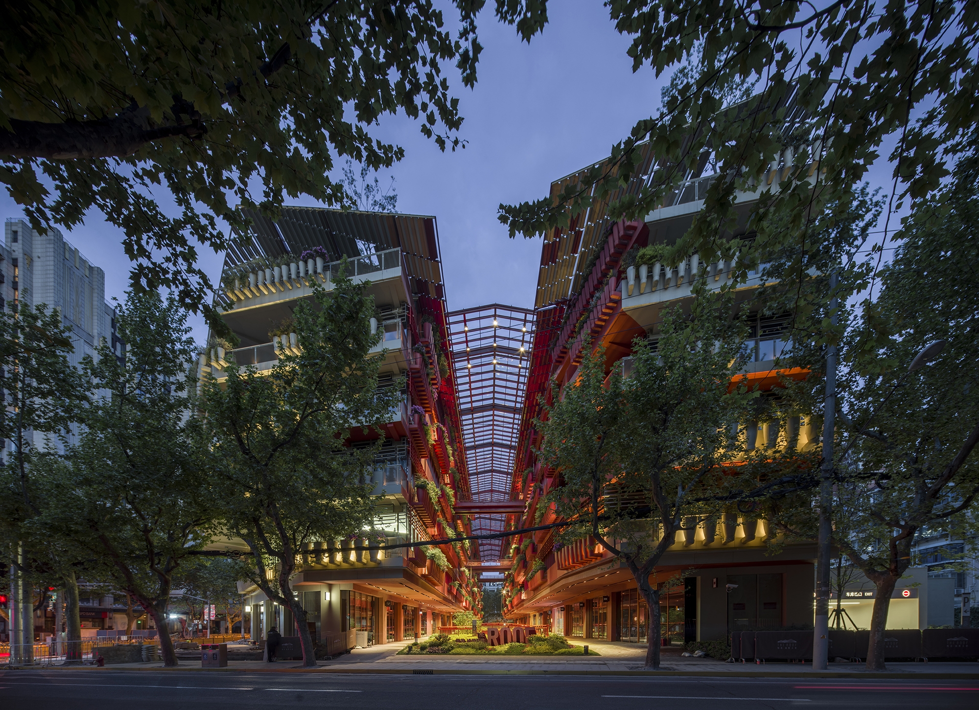 As night falls, light gives more possibilities to architecture, which makes the space more charming, more bold, more enchanting and more attractive. The buildings, the lights, the plants and the people that move through them all work together, so as to create a space with infinite possibilities.