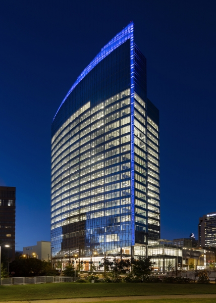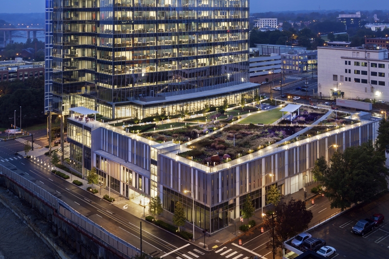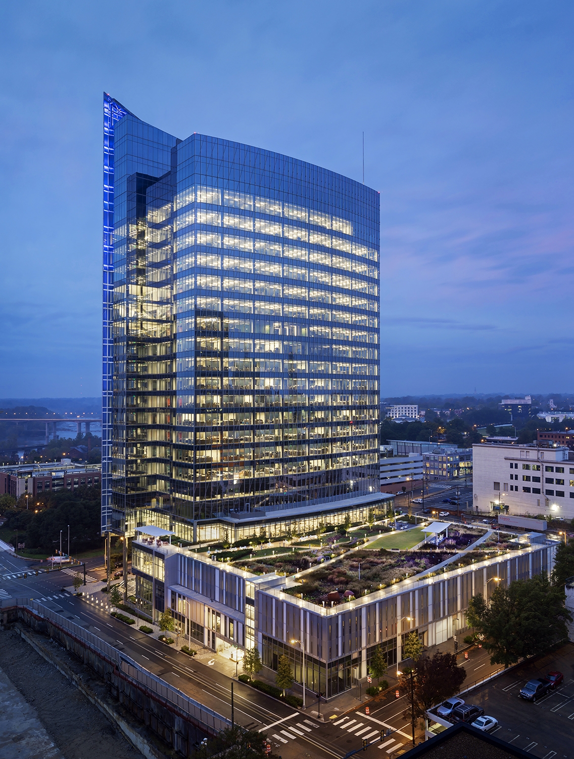 Entry DescriptionThe lighting for this new building in Richmond, VA was inspired by the practice of outlining neighboring buildings with lines of LED neon. Our more ambitious goals for this project were transformative, as our lighting makes the building read entirely differently from day to night.